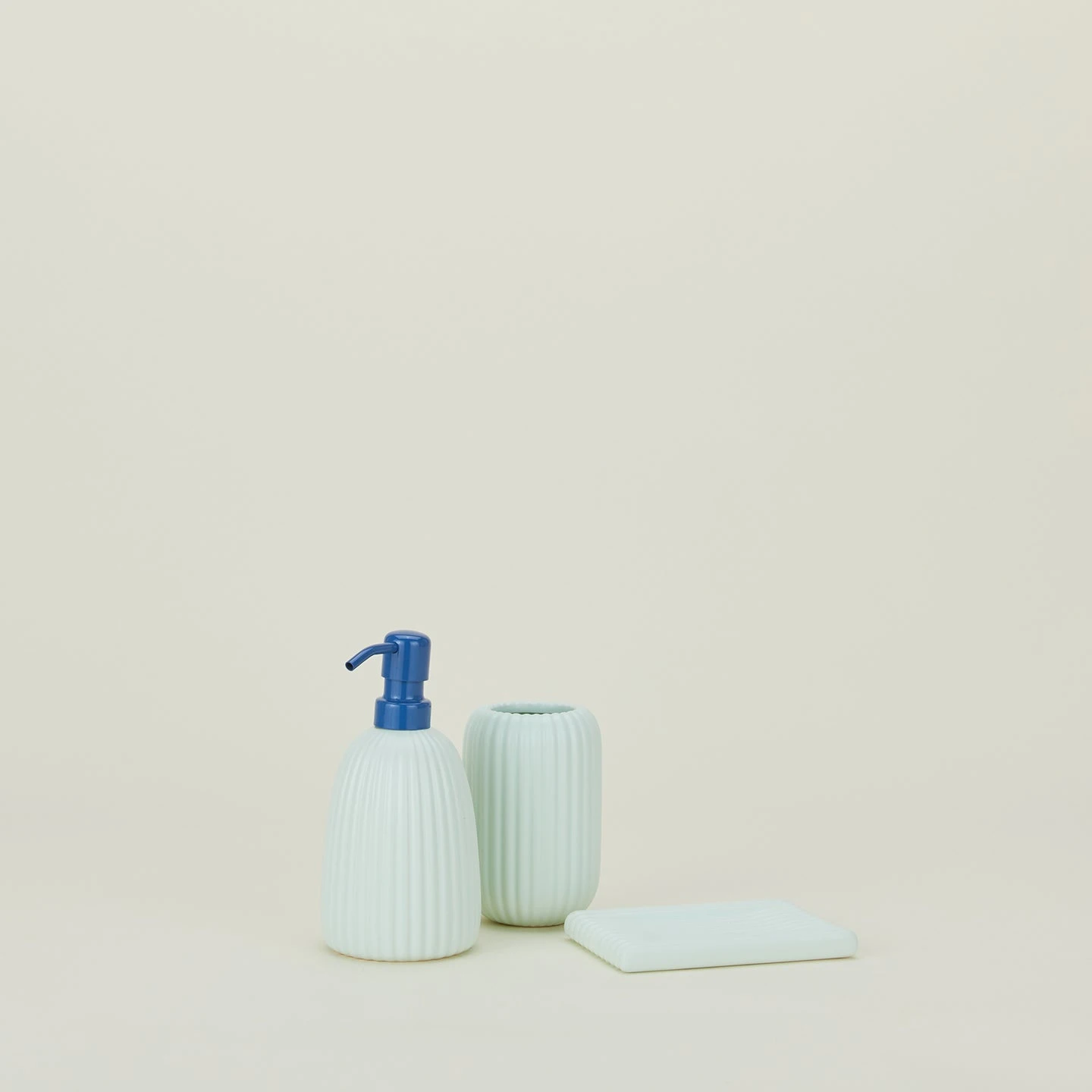 - Corduroy Sink Cup, Soap Dispenser, + Sink Tray designed by Helen Levi Ceramics