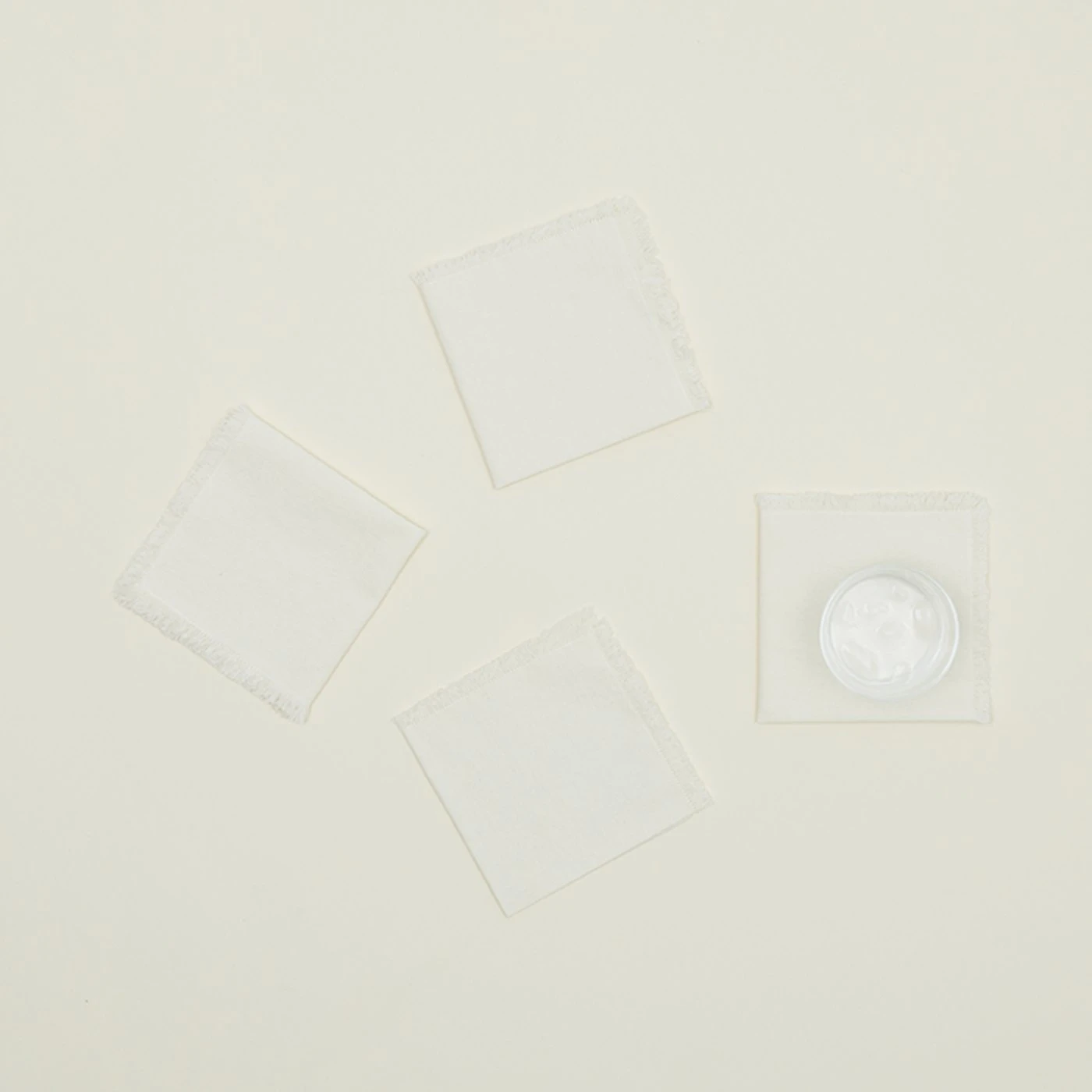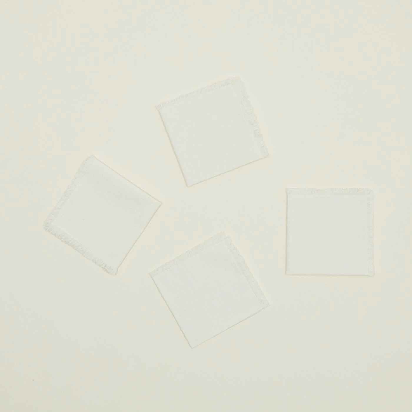 - Hand-dyed cotton cocktail napkins, with a soft fringed edge