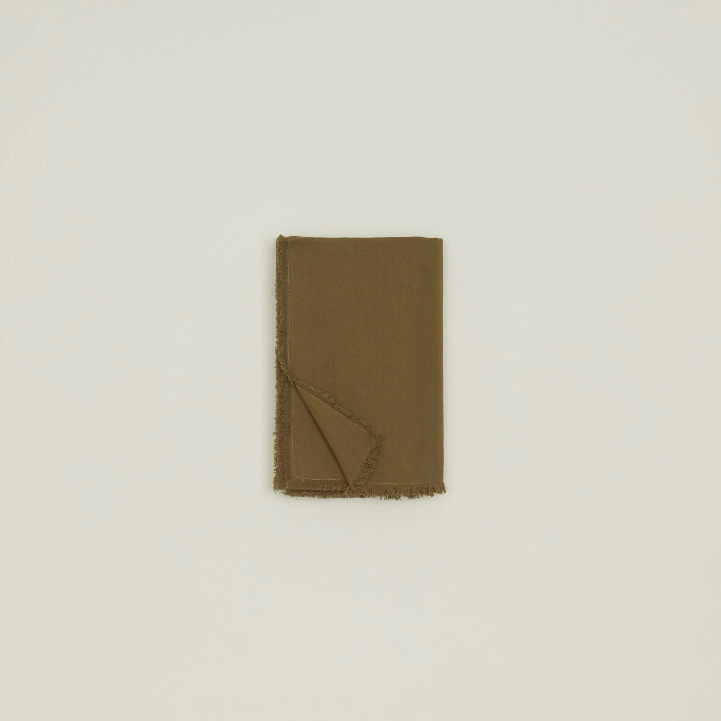 - Hand-dyed cotton tablecloth, with a soft fringed edge