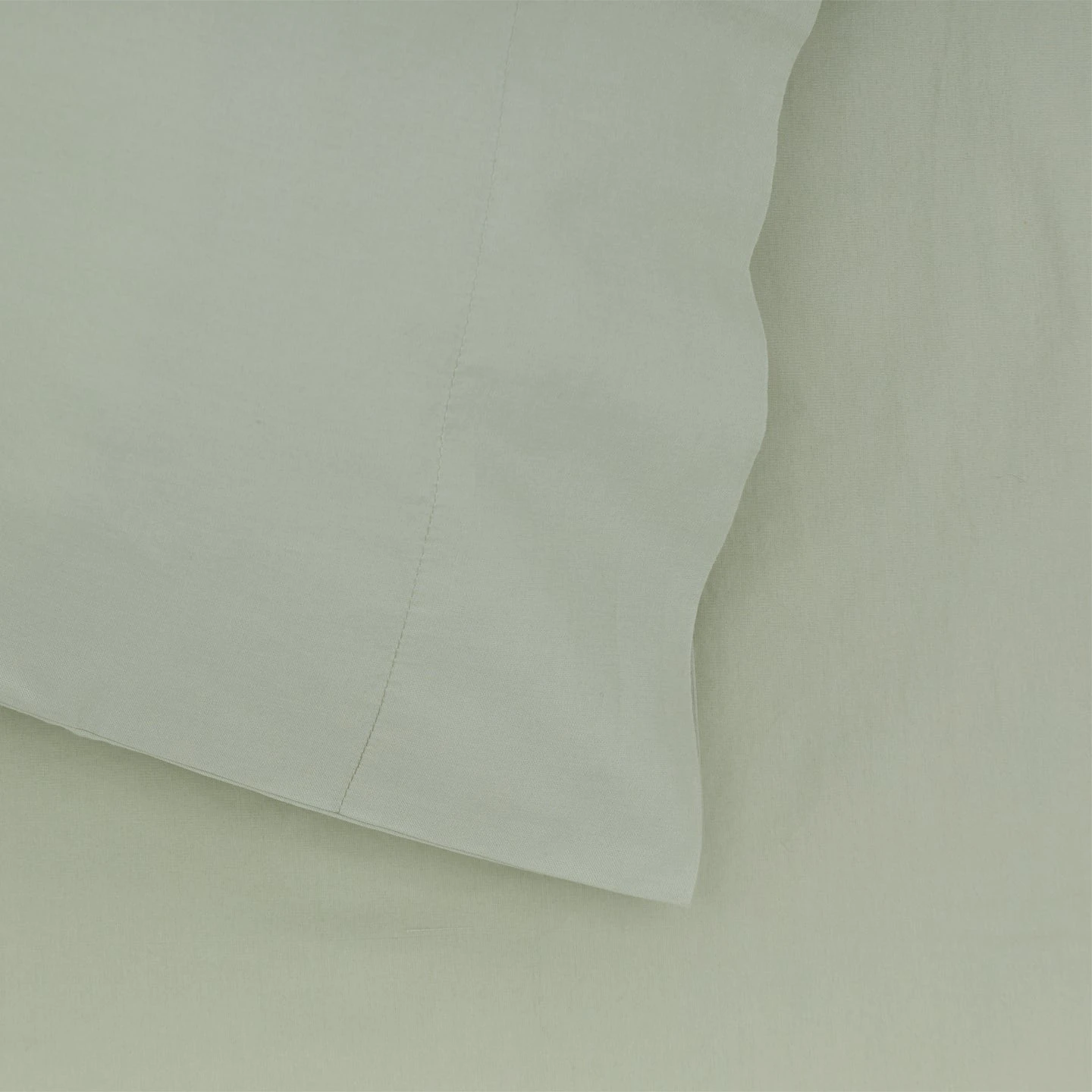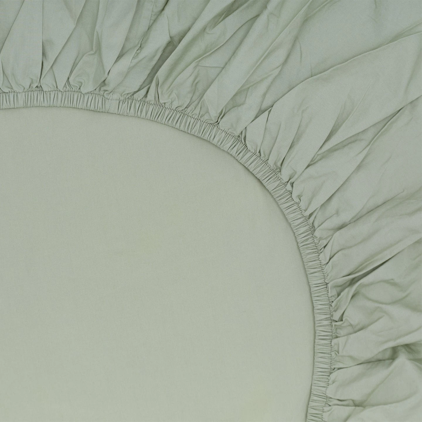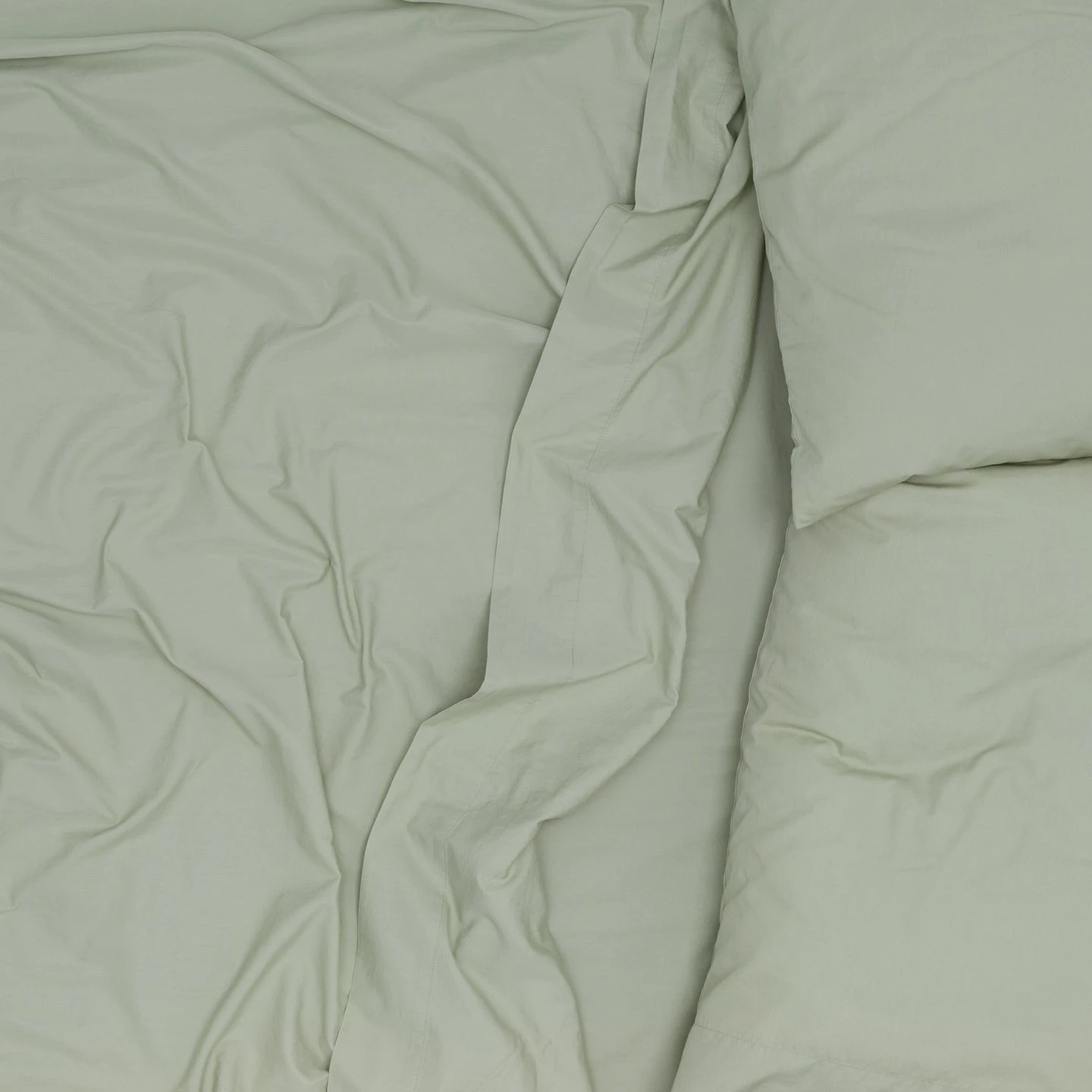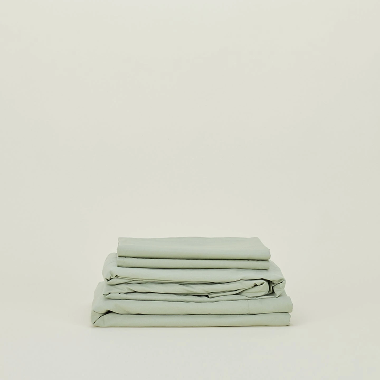 - A flat sheet, fitted sheet, + set of pillowcases in Hawkins percale