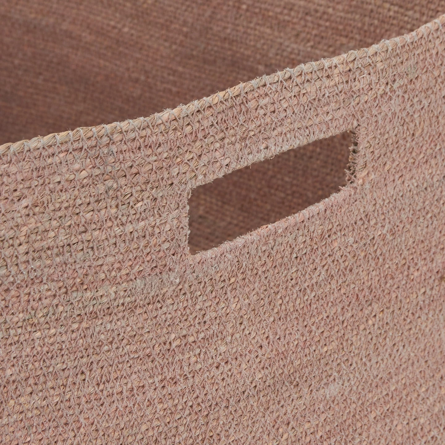 - A handwoven seagrass basket with handles for easy transport