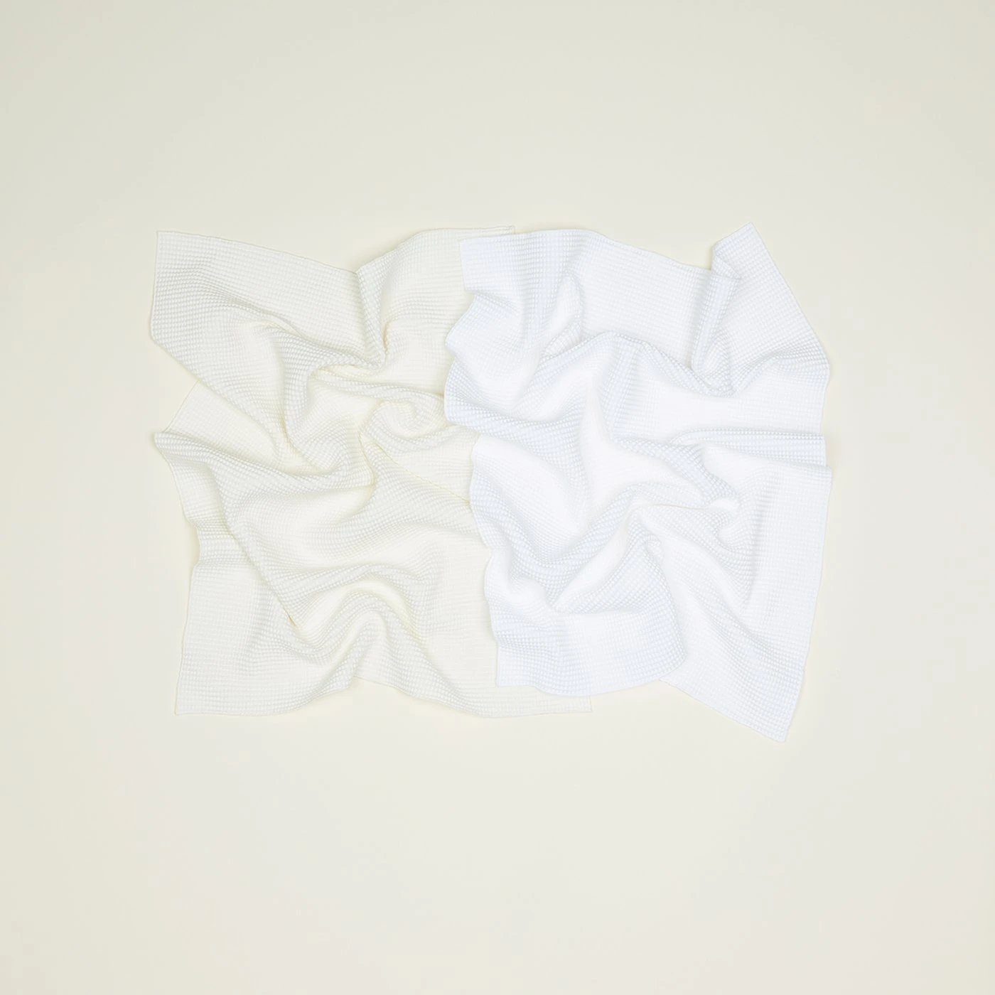 - A set of 2 soft waffle weave kitchen towels in complementary shades