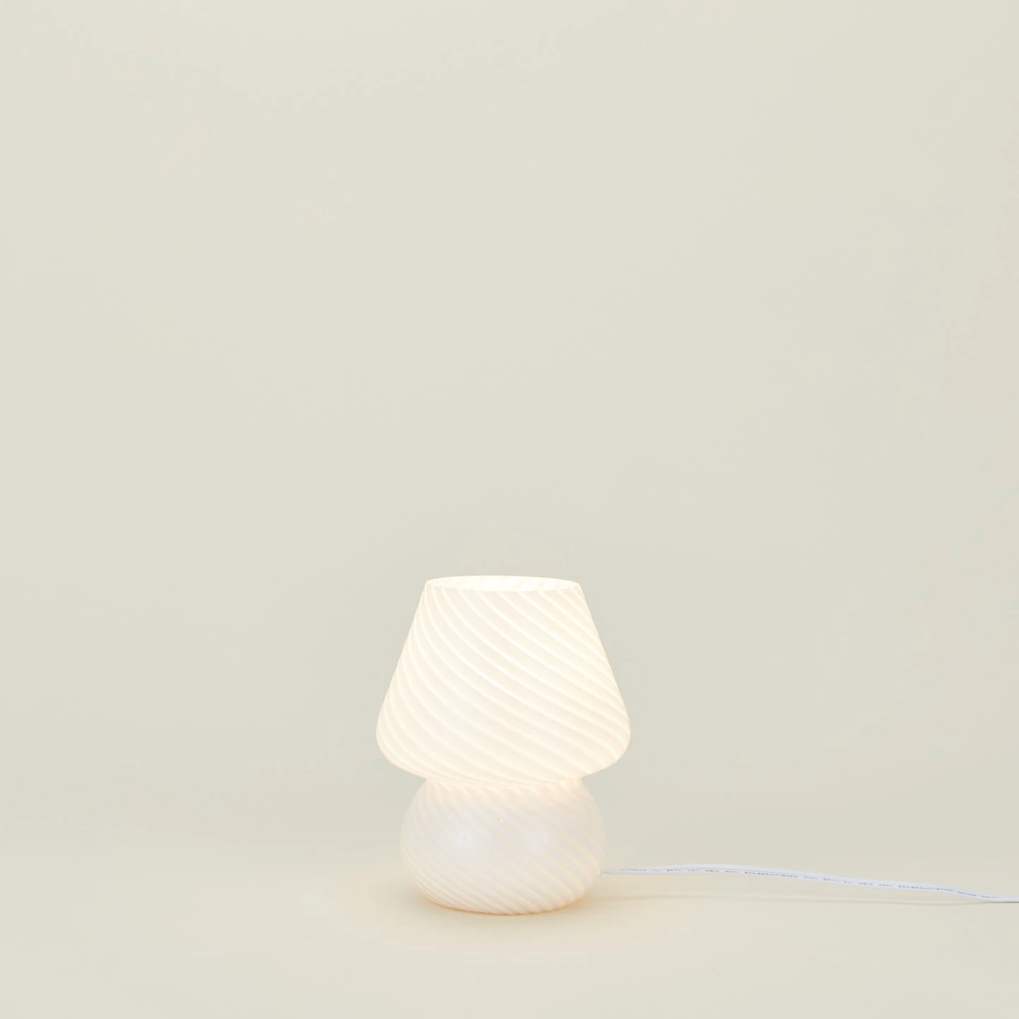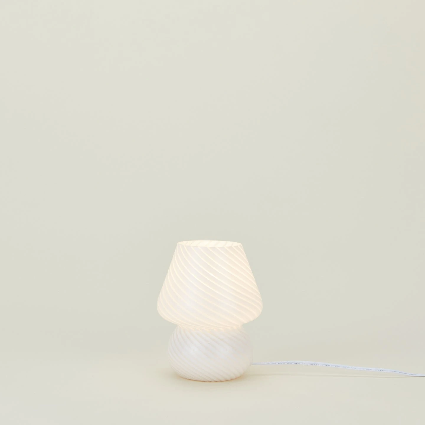- Hand blown + hand crafted mini glass mushroom lamp in White