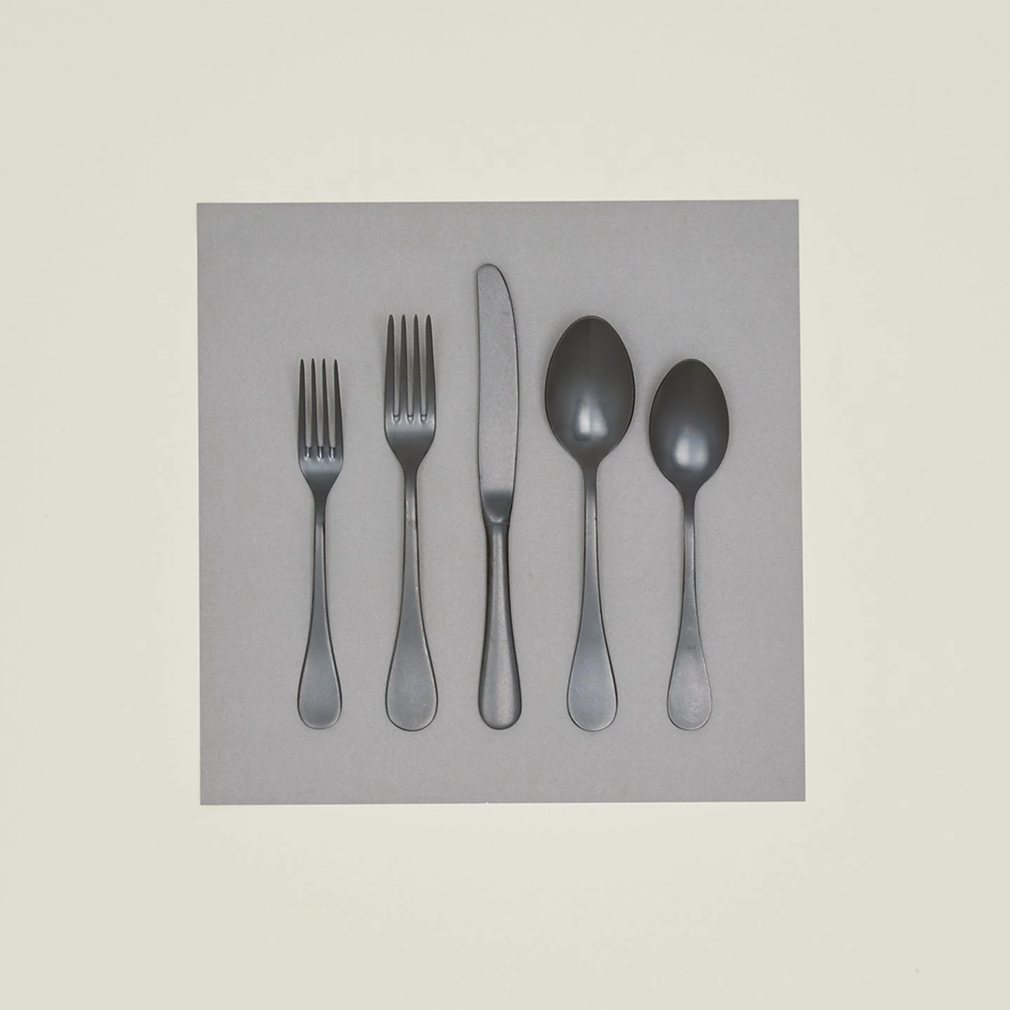 - 5 piece set (salad + dinner fork, dinner knife, dinner + dessert spoon)