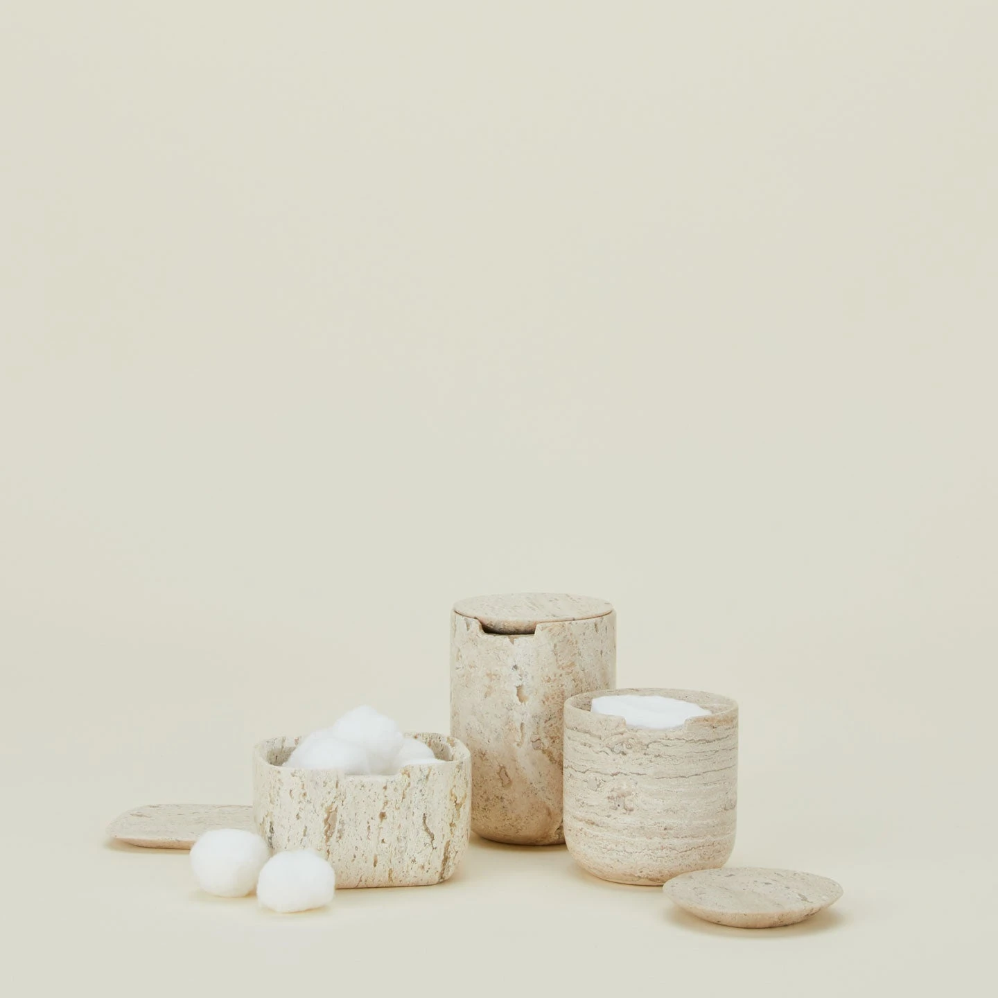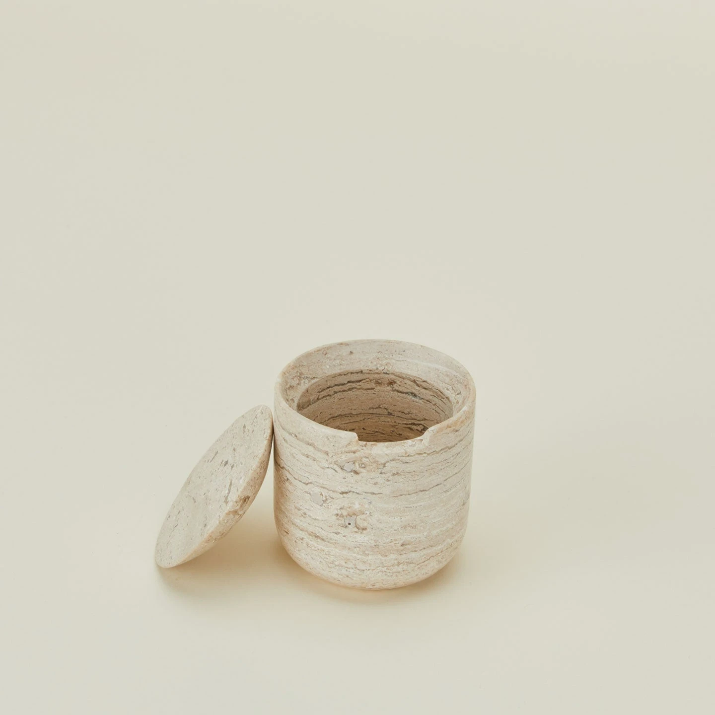 Handmade travertine container with a matching lid, available in 3 shapes