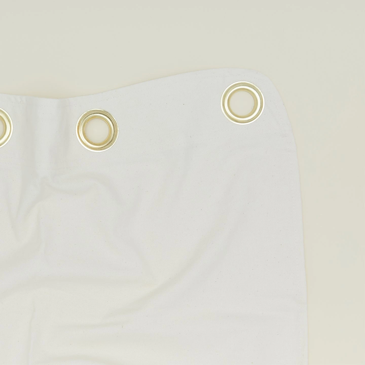 Cotton canvas curtain in Natural/Terracotta, with denim hemming inside + outside