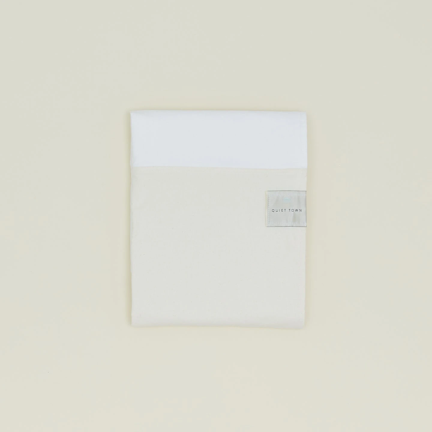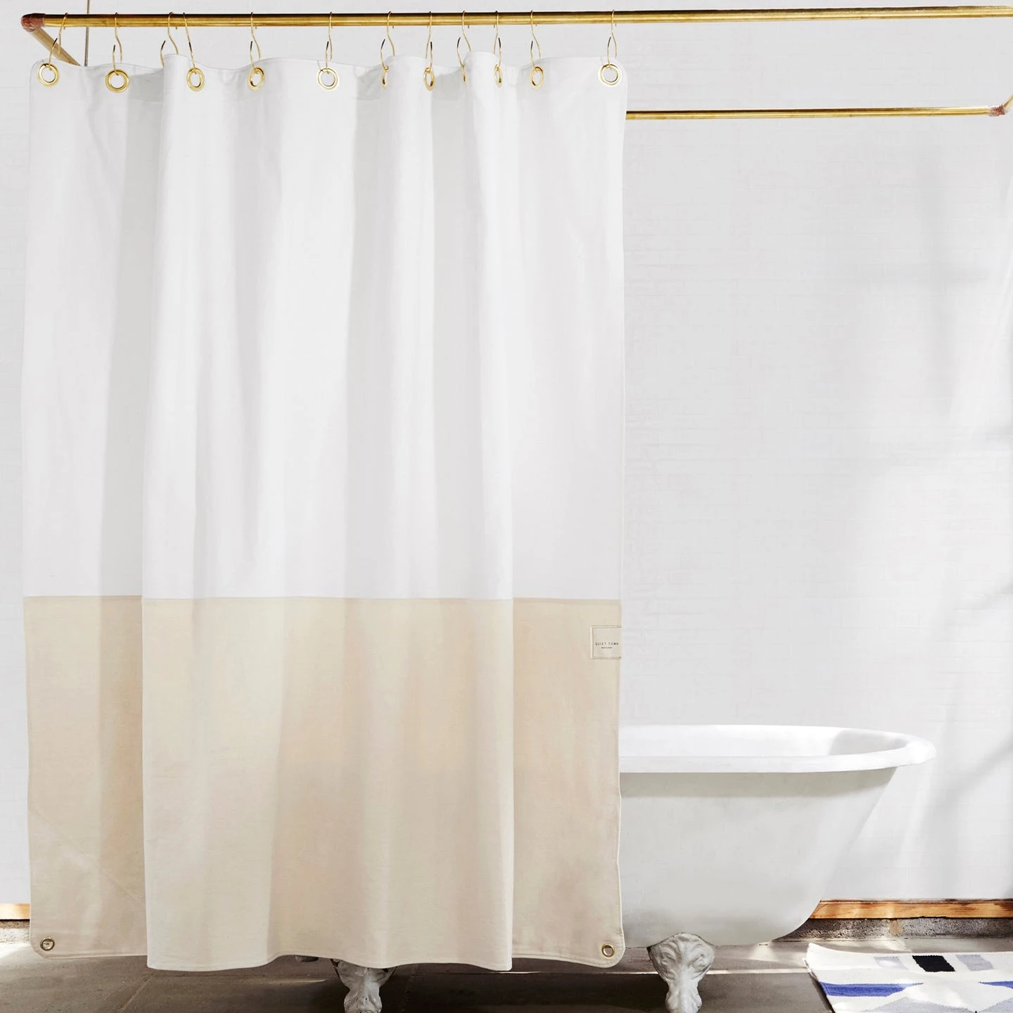 Cotton canvas curtain in White/Natural, with denim hemming inside + outside