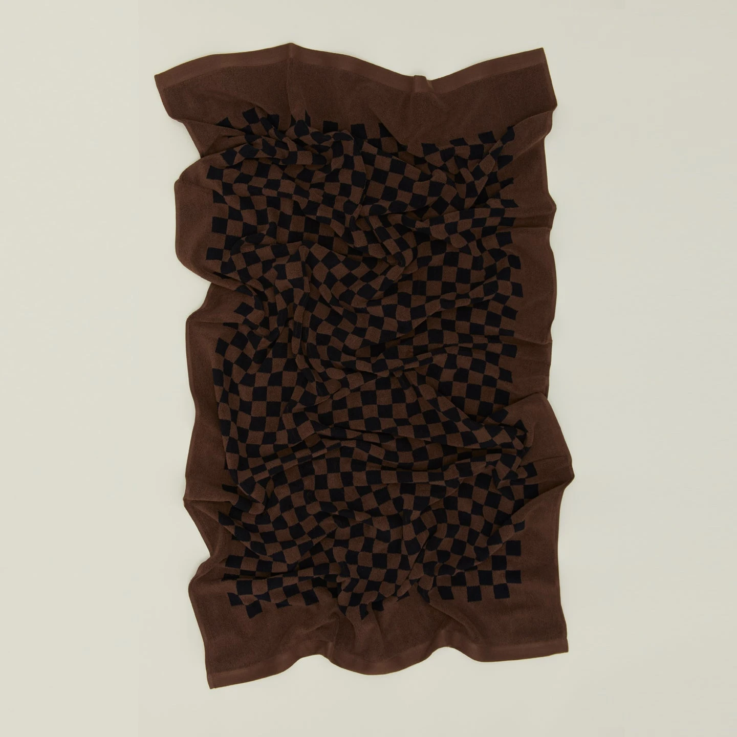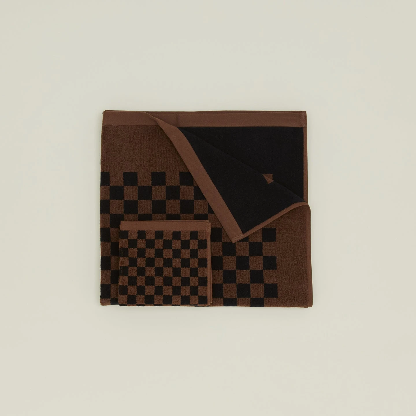 - 100% Organic Cotton towel in Brown + Black checkerboard