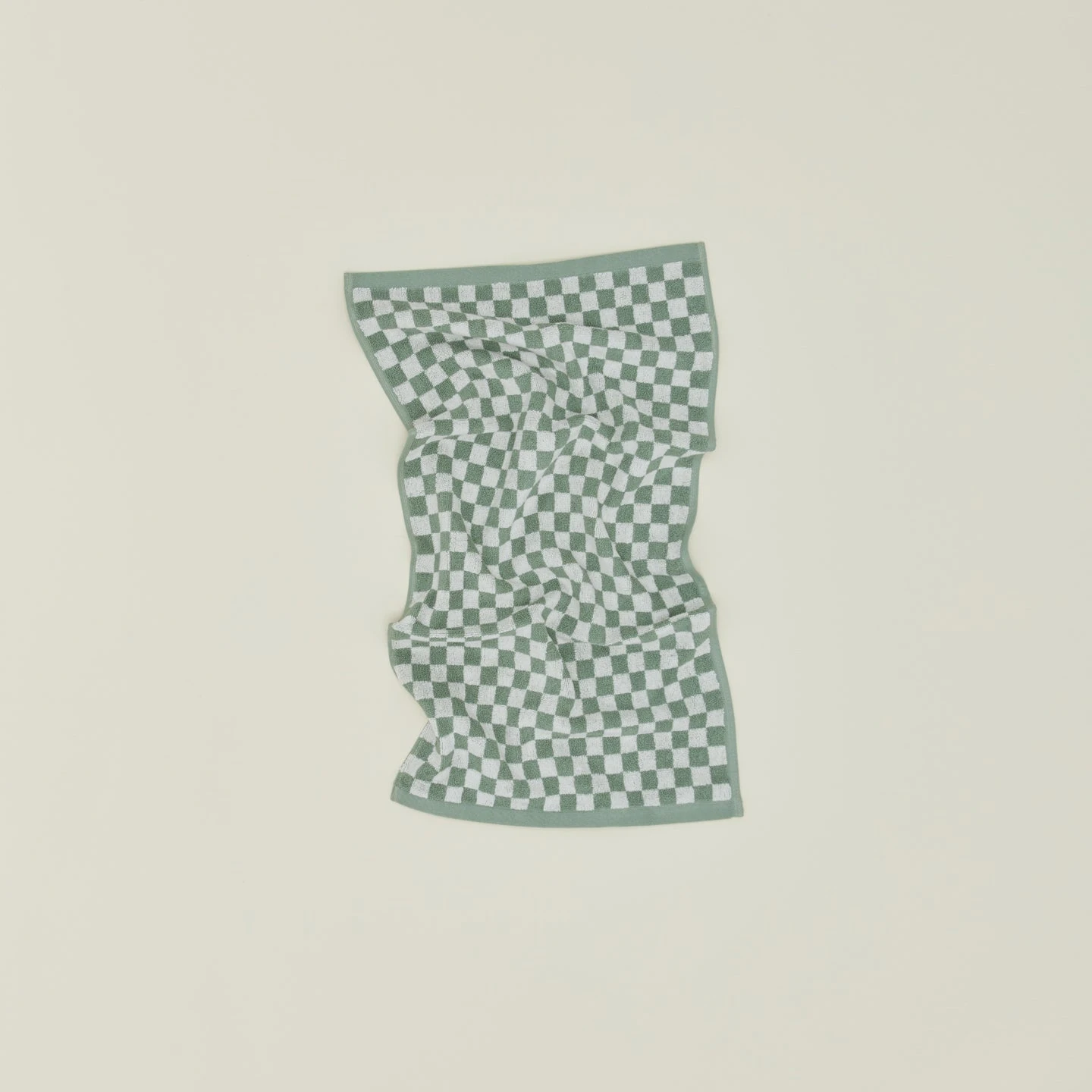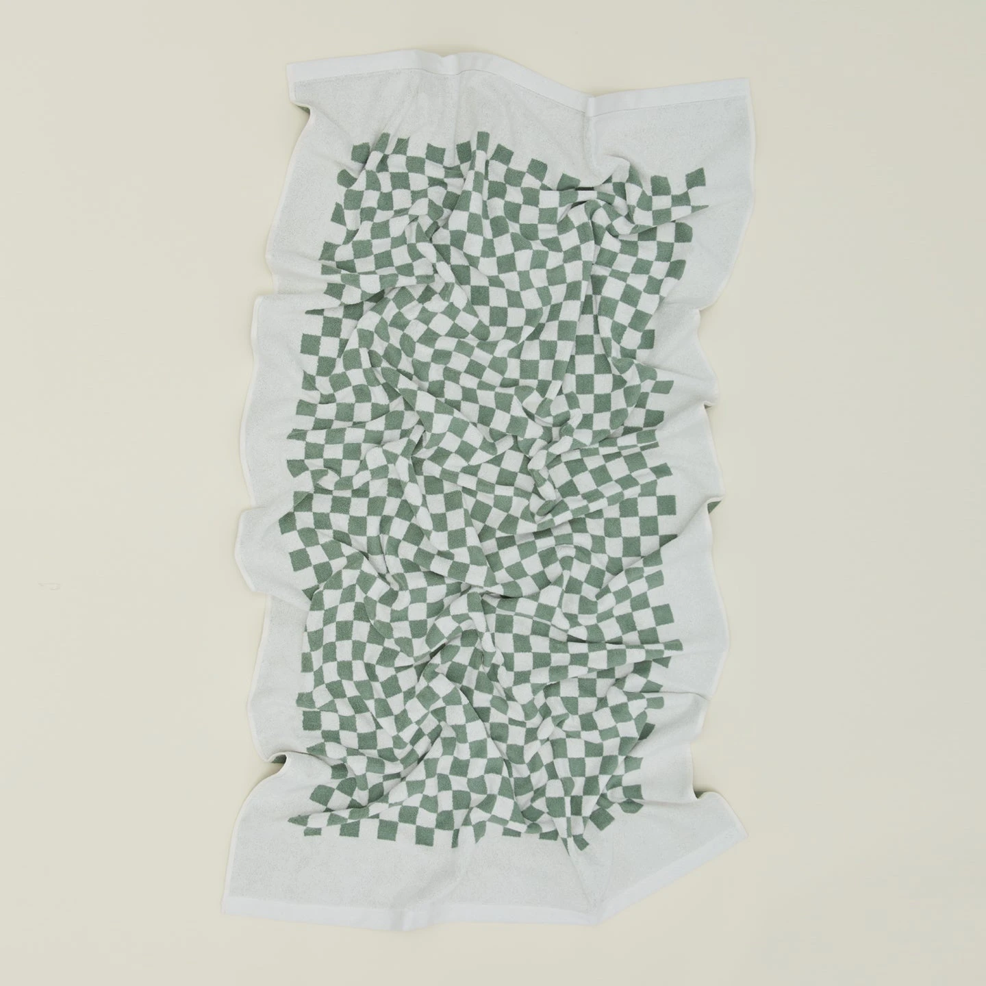 100% Organic Cotton towel in Sage Green + White checkerboard
