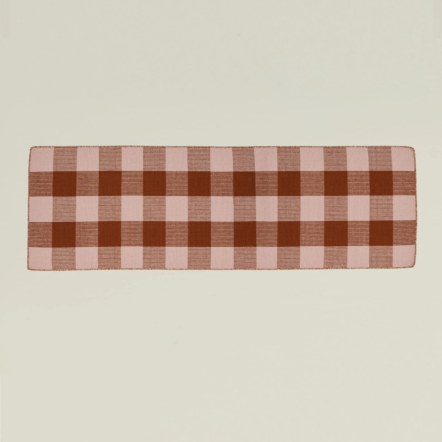 - 2.5’ x 8’ plaid rug in Blush/Terracotta