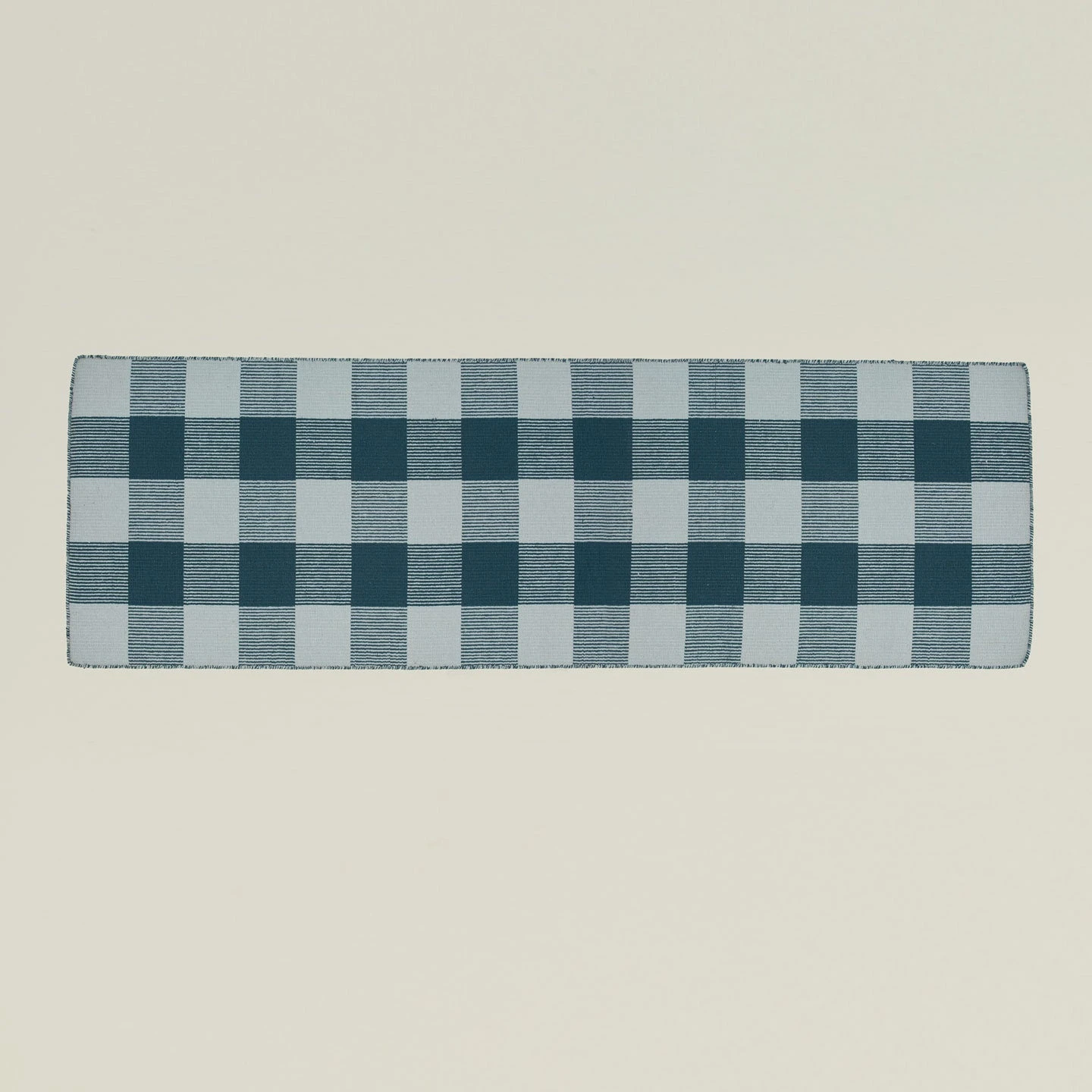- 2.5’ x 8’ plaid rug in Sky/Peacock